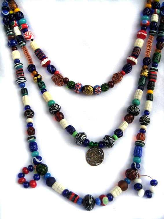 I updated my Viking strands in 2008. They now include 3 strands, and all the feature beads are recreations of archeological finds, including new beads in the style of those I photographed in the Louvre and The British Museum. Many of the bead styles are featured in my bead timeline.